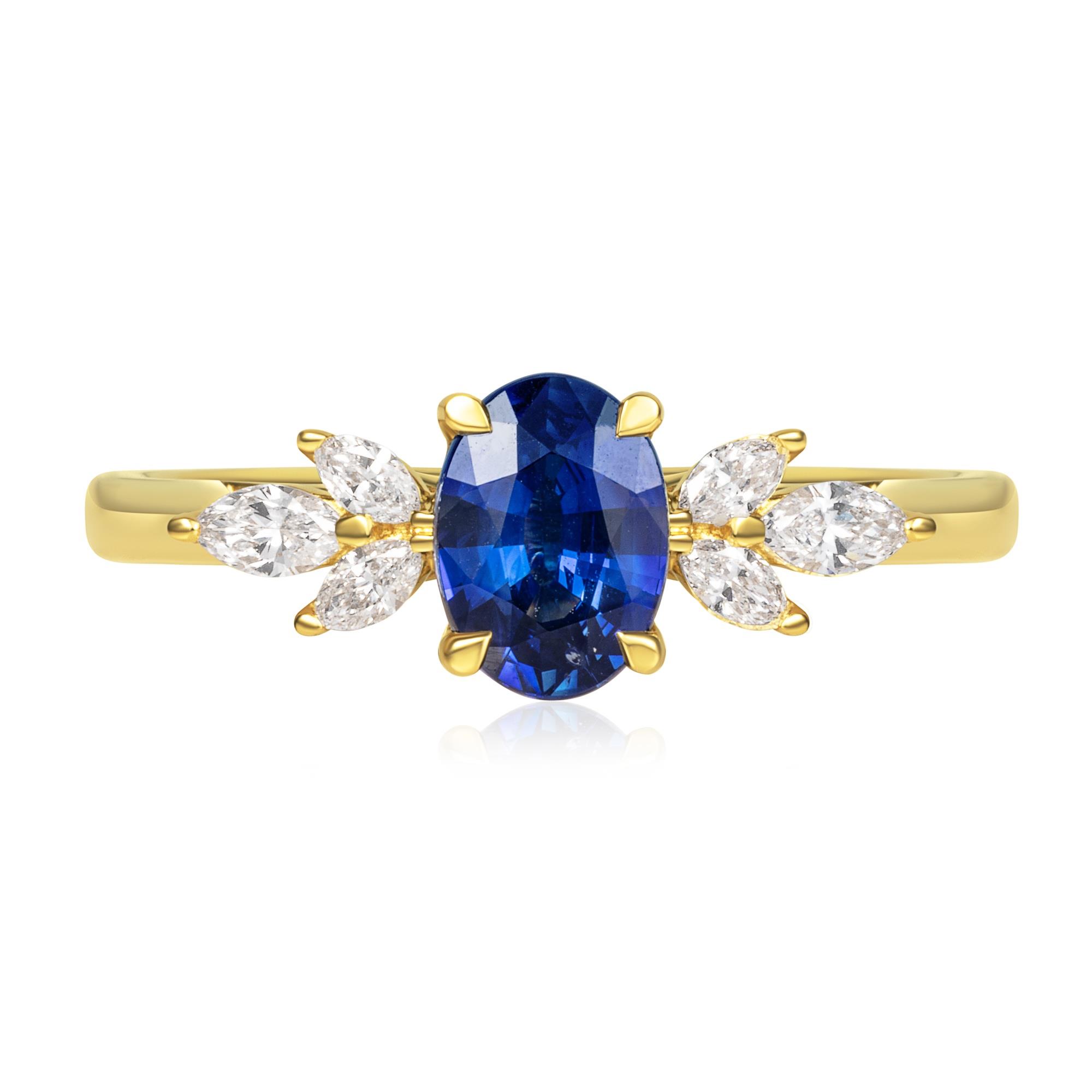 18ct Yellow Gold Oval Sapphire and Marquise Diamond Engagement Ring