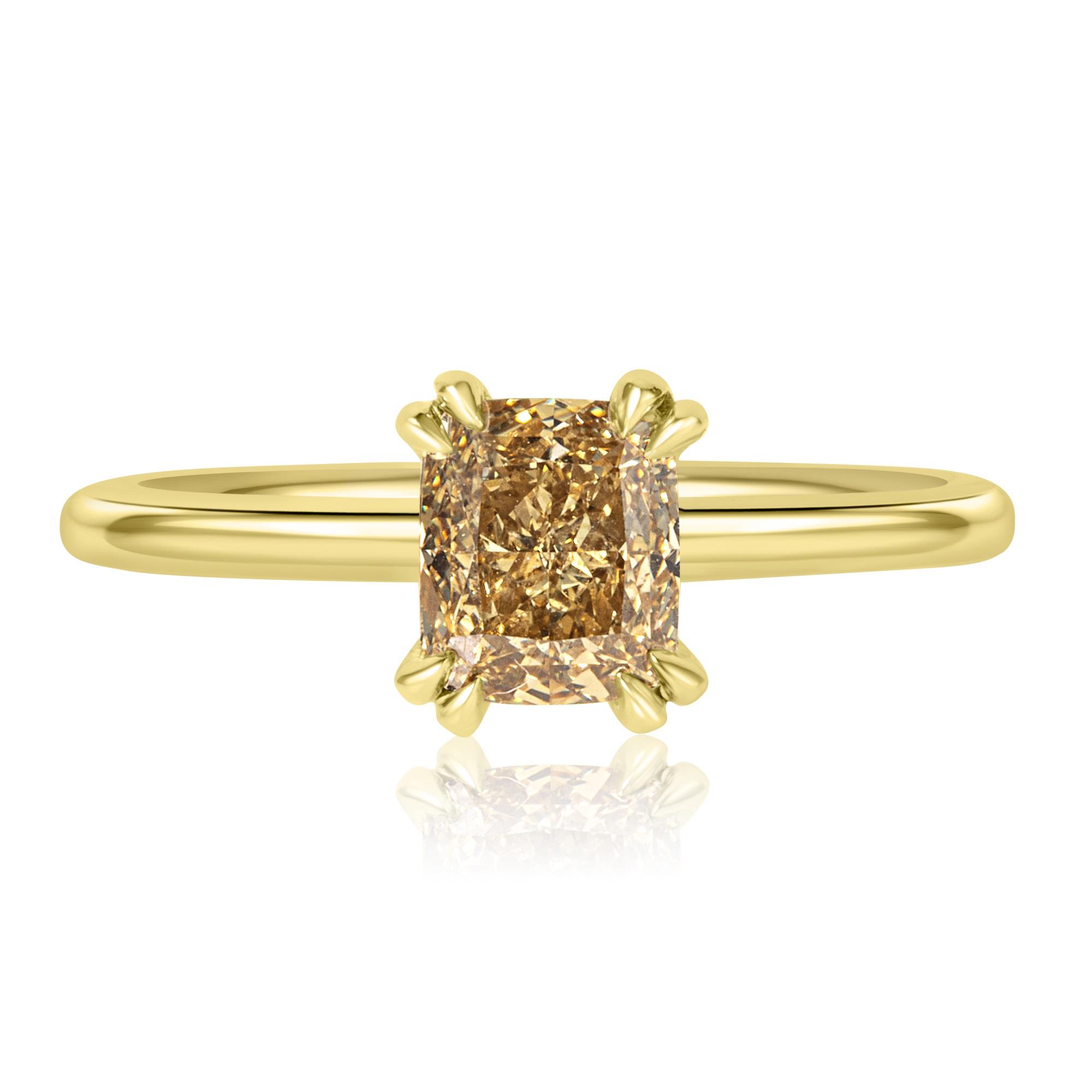 18ct Yellow Gold Cushion Champagne Diamond Engagement Ring