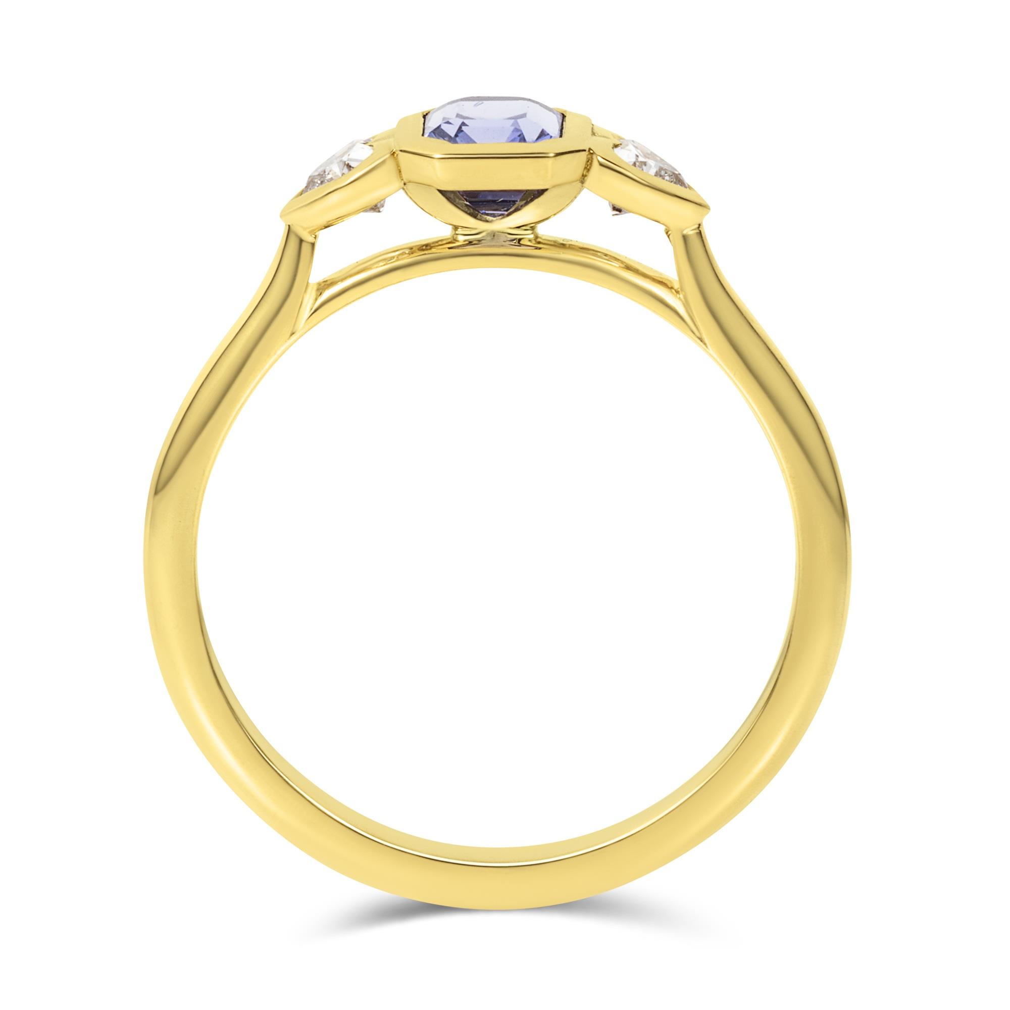 18ct Yellow Gold Emerald Cut Violet Sapphire and Diamond Engagement Ring
