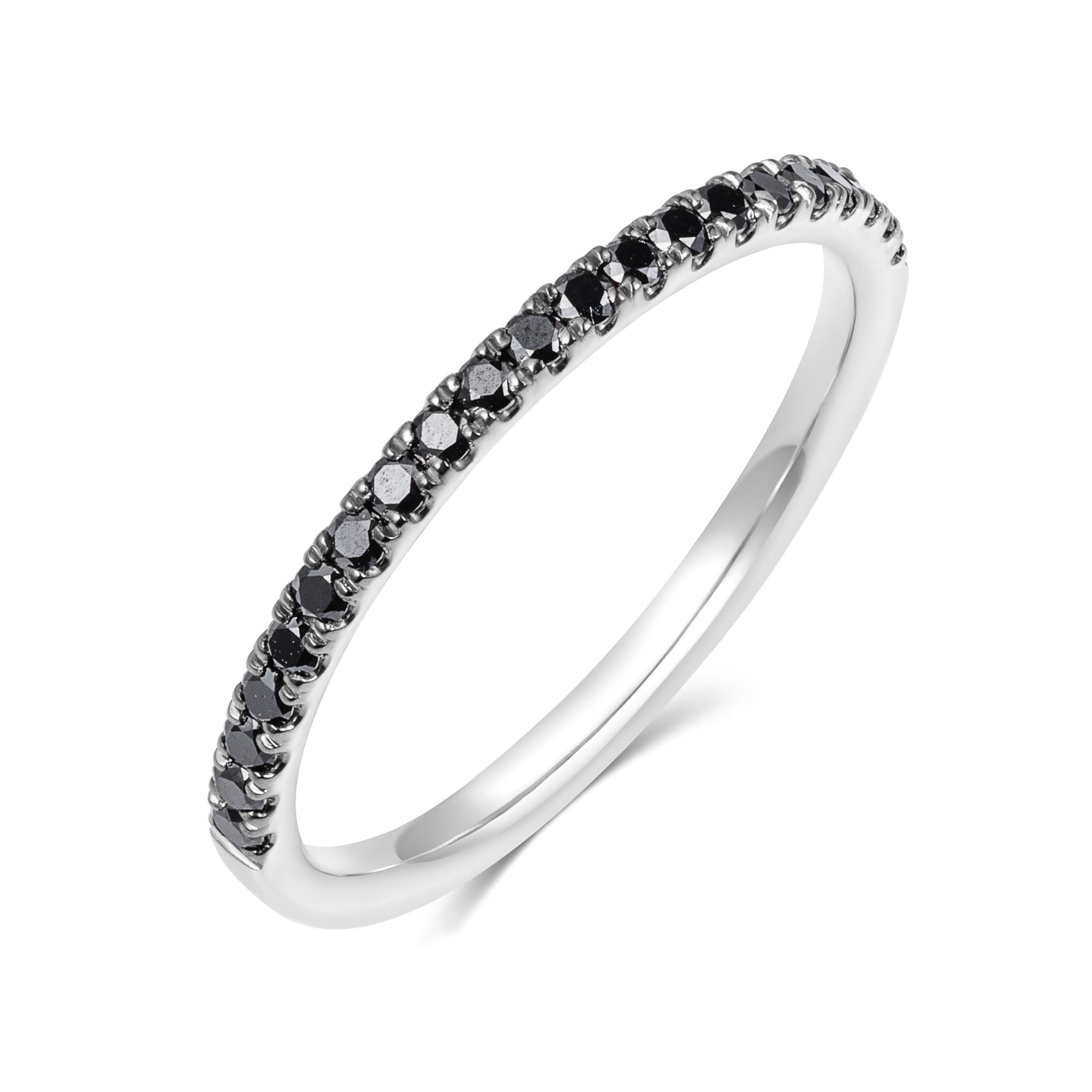 Delicate diamond eternity or wedding ring crafted in platinum. This contemporary design features a row of round brilliant-cut black diamonds set over the top of the band.