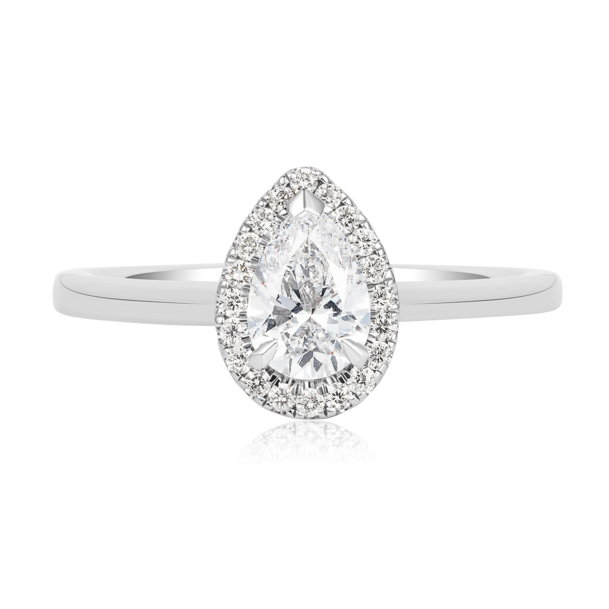 Platinum Pear Shape Diamond Halo Engagement Ring 0.85ct