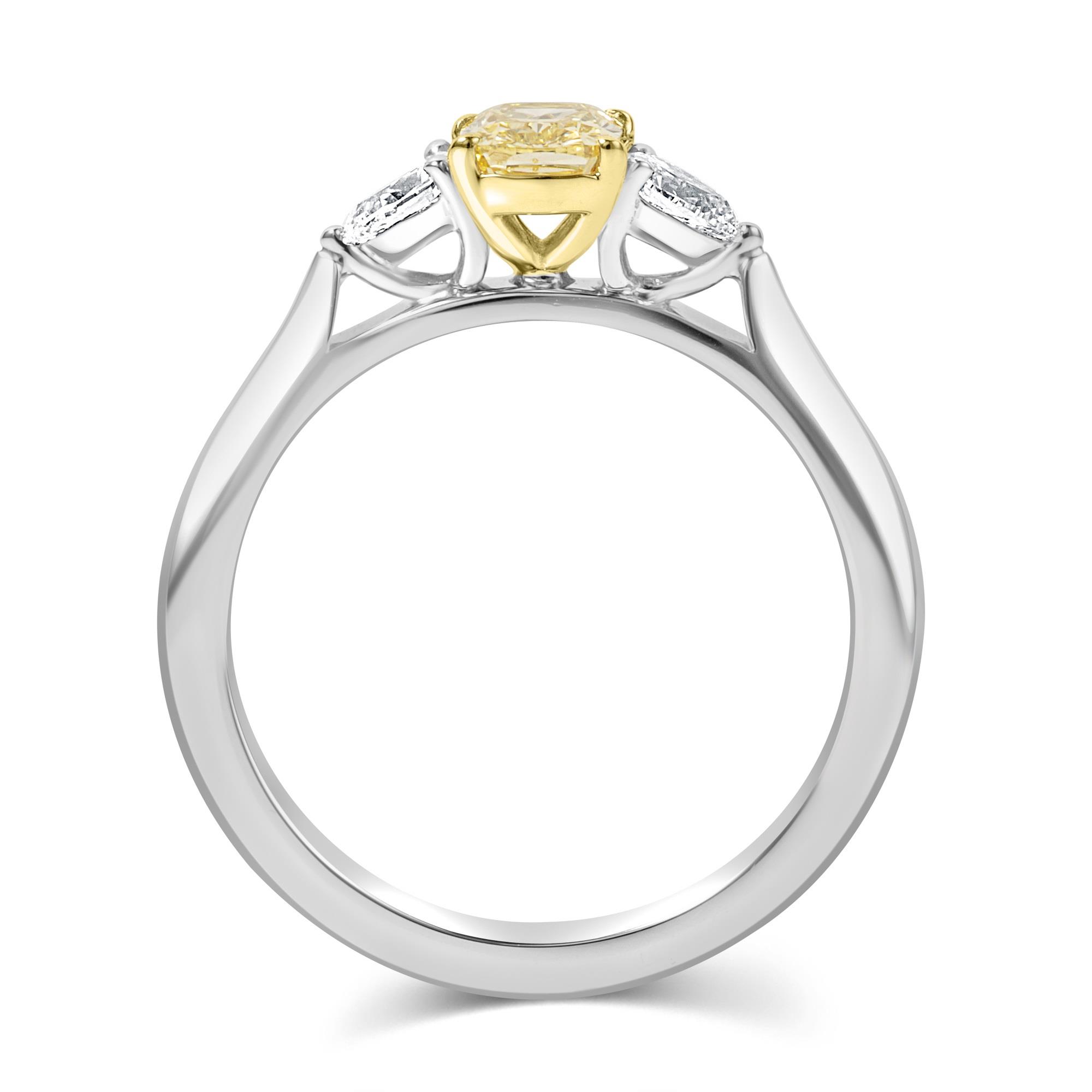Platinum Cushion Cut Yellow Diamond Three Stone Ring 0.55ct