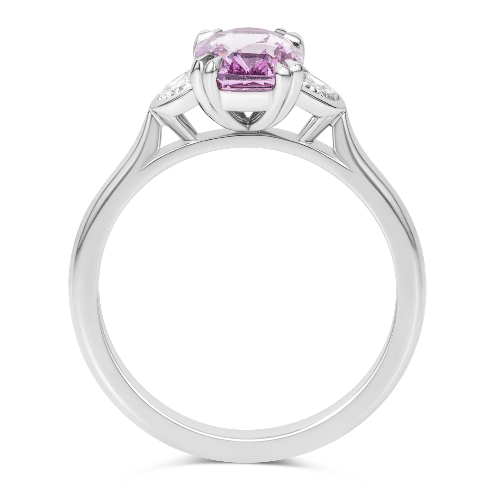 The pink sapphire weight is 1.75ct and comes with a WGI certificate. The total diamond weight is 0.25ct, all with a minimum colour F/G and a minimum clarity VS. Learn more about gemstones by reading our Gemstone Guide.