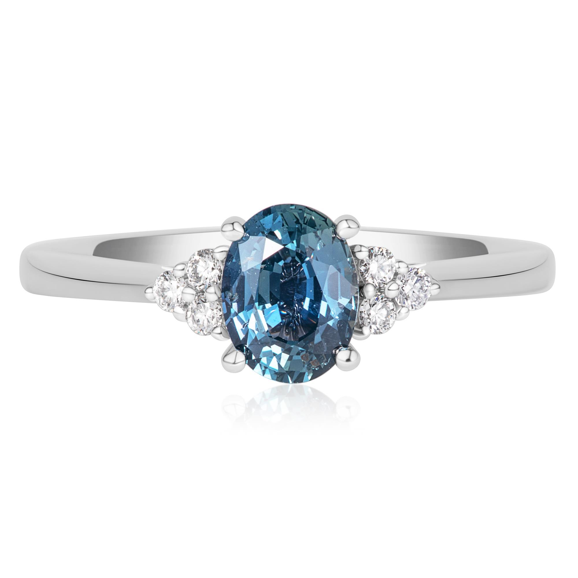 Fall in love with this unusual colour change sapphire and diamond engagement ring. Featuring a 1.21ct oval sapphire which changes colour from teal to violet depending on the light. The diamond cluster on each side of the sapphire brings out the rich hue of its unique colours. Explore more colour gemstone engagement rings at Pravins.