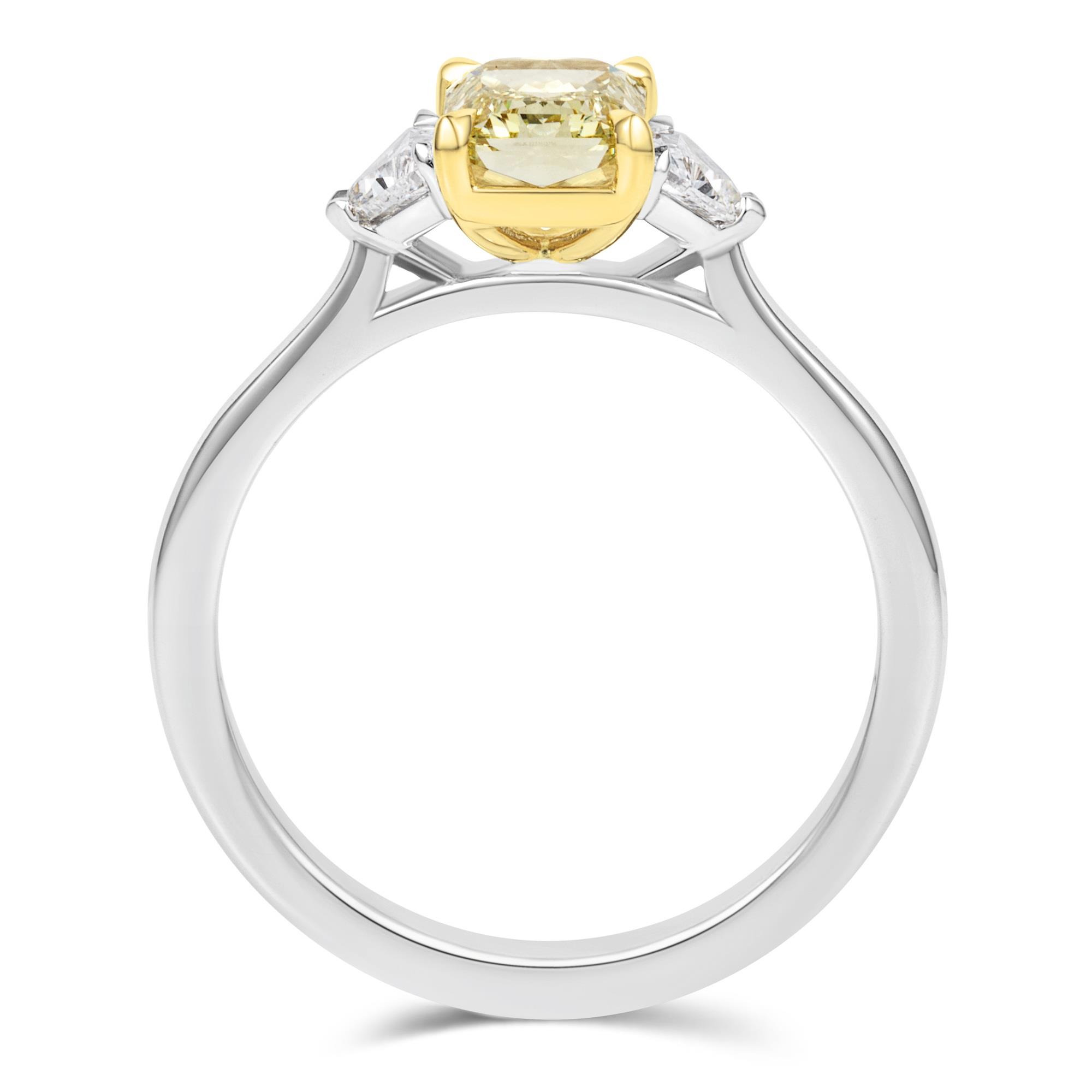 The centre diamond weight is 1.25ct with a fancy brownish yellow colour and VS1 clarity. The diamond is accompanied by a GIA certificate. The total side diamond weight is 0.26ct, all with a minimum colour F/G and a minimum clarity VS.