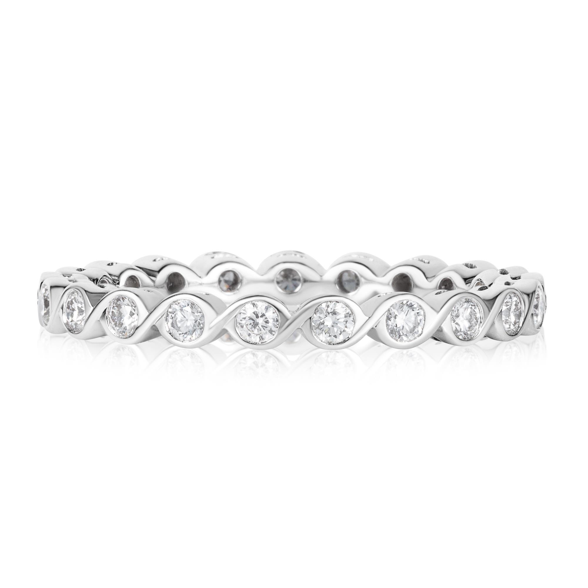 Modern diamond full eternity ring crafted in 18ct white gold. This elegant design features round brilliant-cut diamonds in fine S-shaped rubover settings.