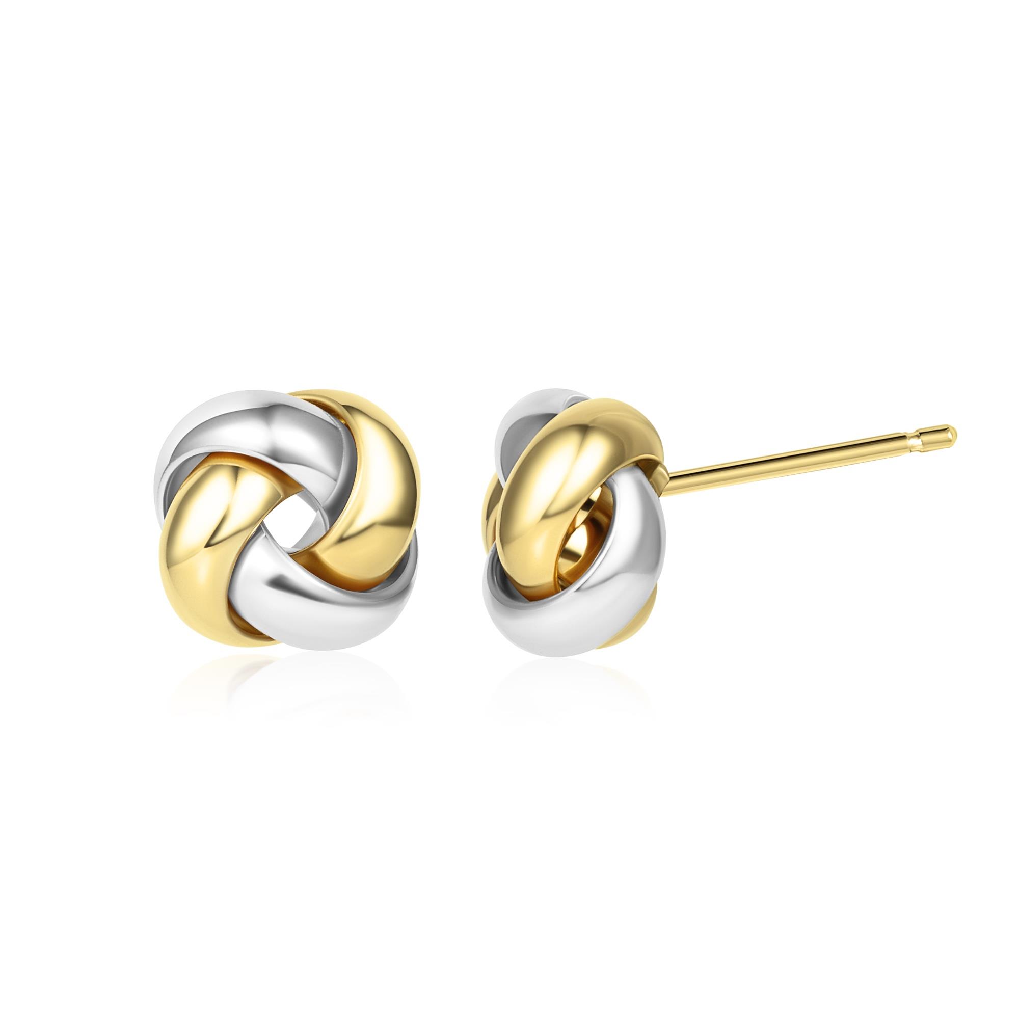 Two Colour Gold Knot Stud Earrings 9.5mm