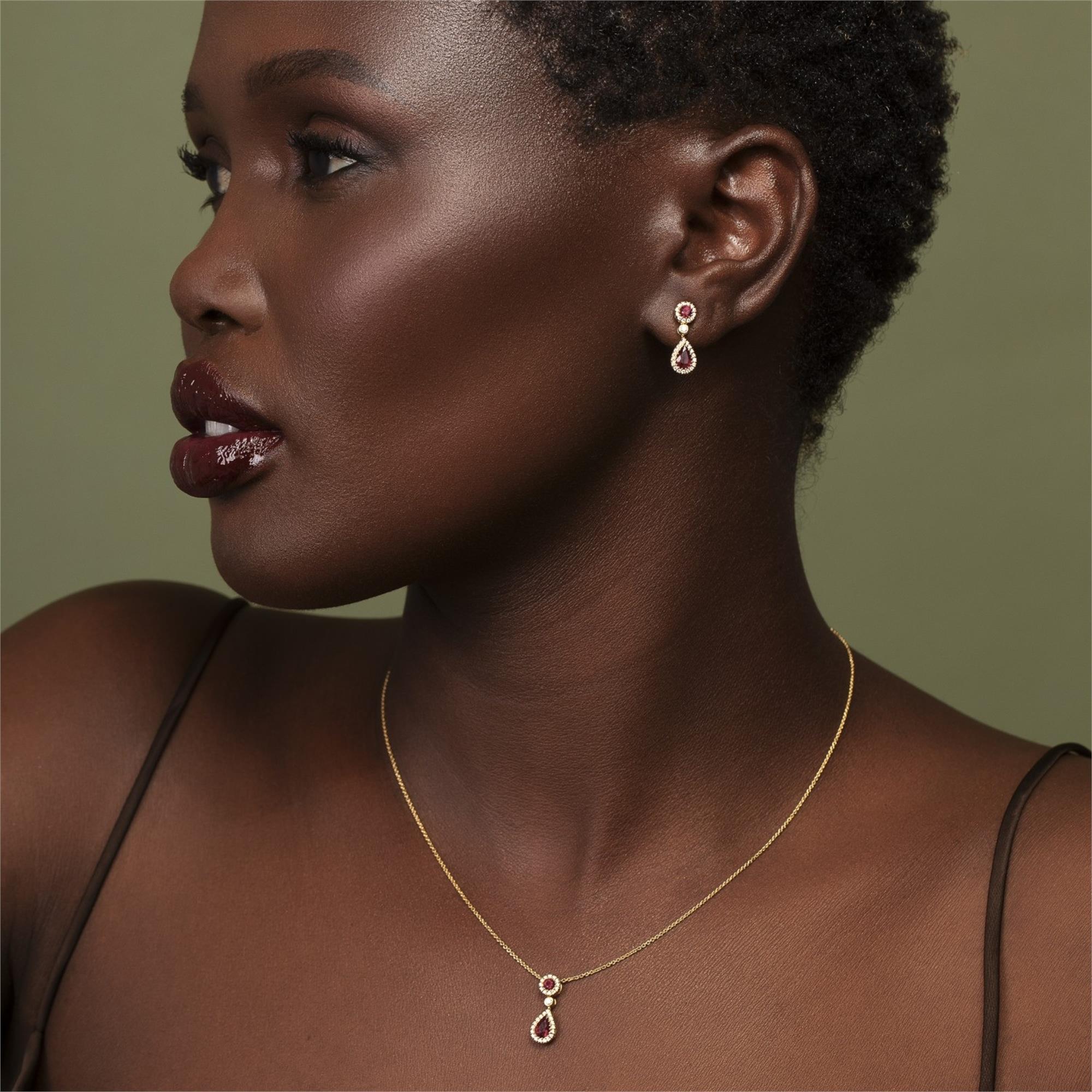 Camellia 18ct Yellow Gold Pear Shape Ruby and Diamond Drop Earrings