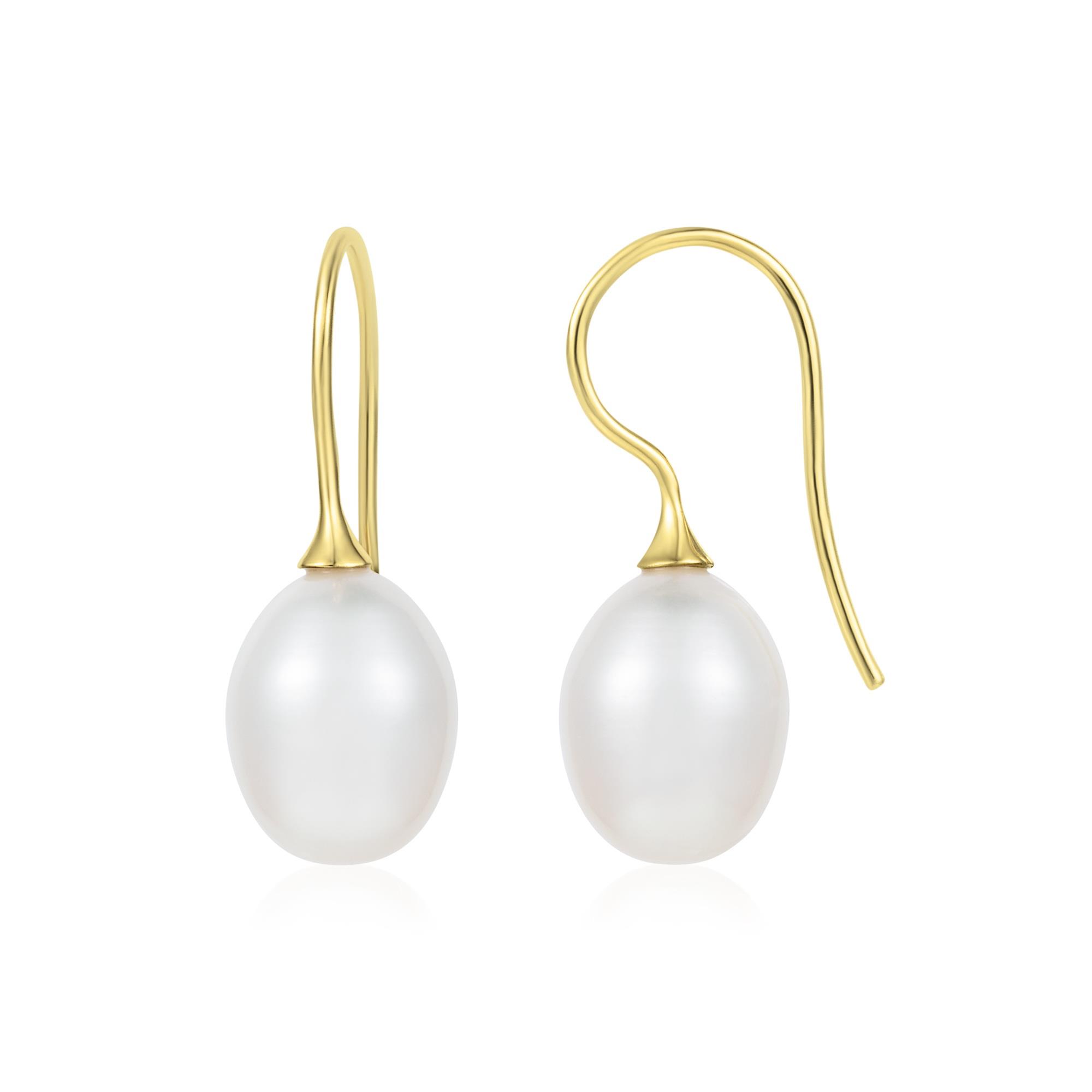 Classix pearl drop earrings crafted in 18ct yellow gold. This elegant design features a white oval freshwater pearl on the end of a shepherd's hook fitting.