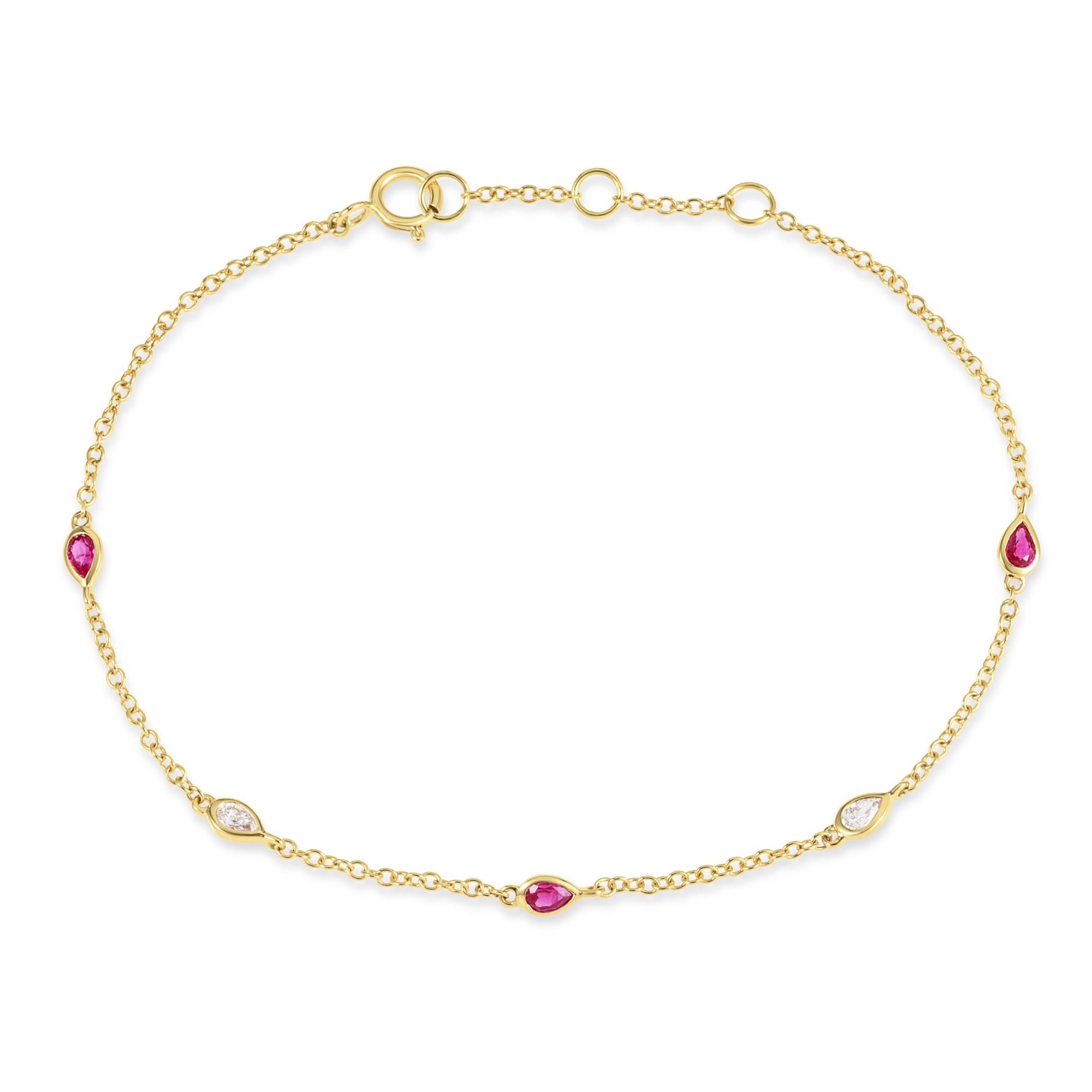 18ct Yellow Gold Pear Ruby and Diamond Bezel Set Station Bracelet