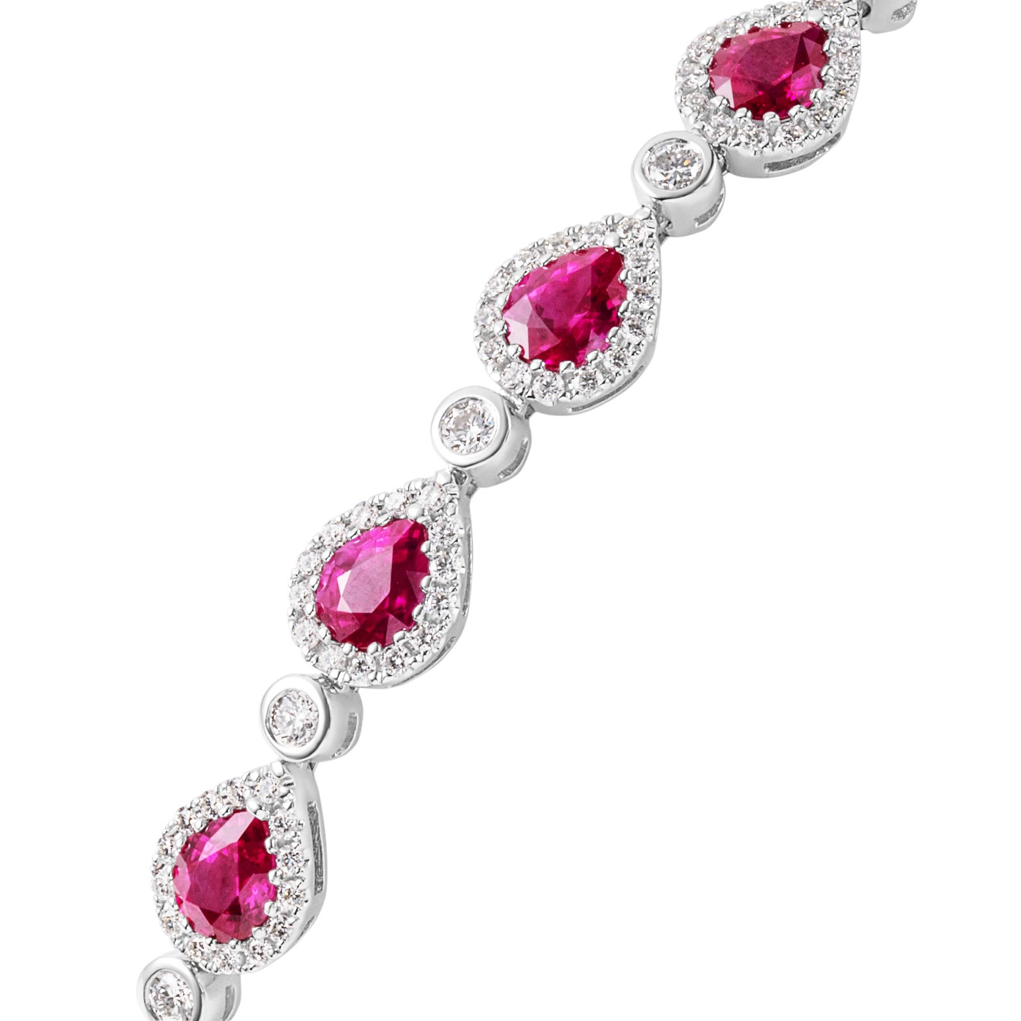 18ct White Gold Pear Ruby and Diamond Bracelet
