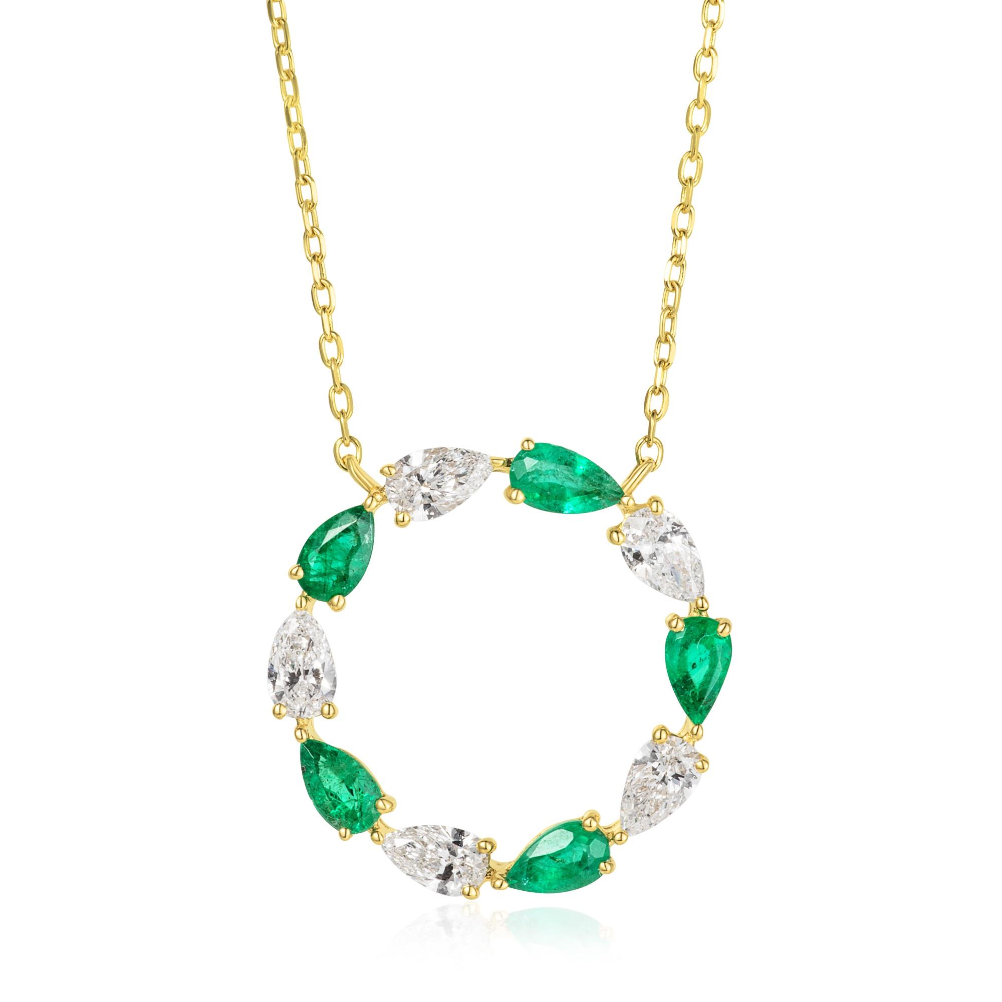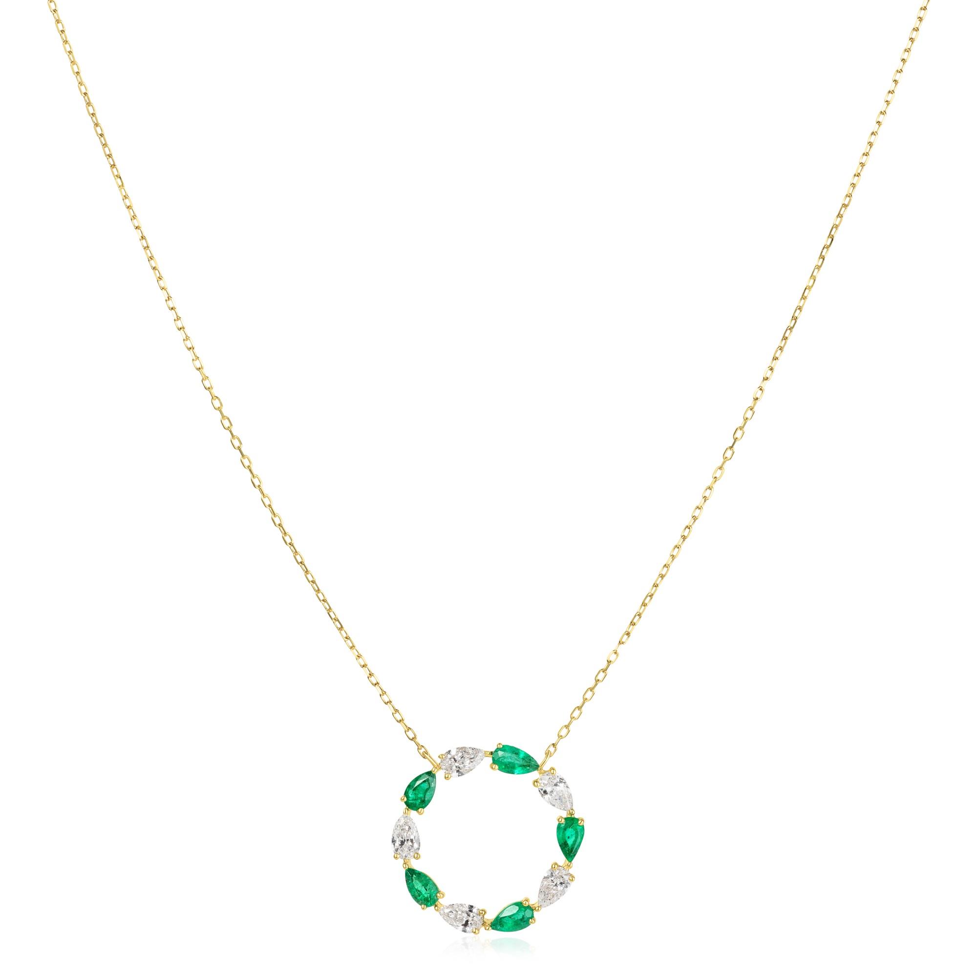 Aurora Yellow Gold Emerald and Diamond Circle Necklace