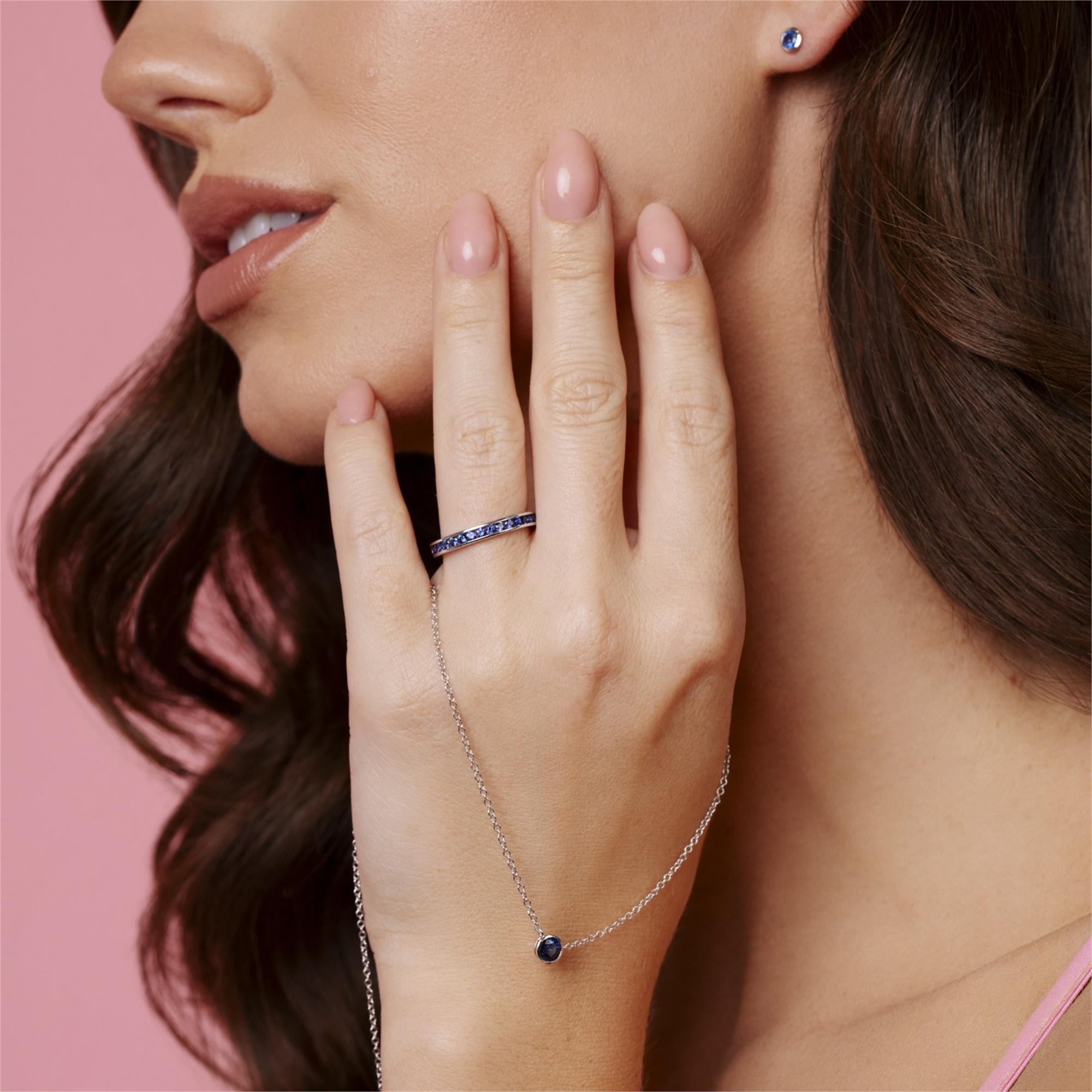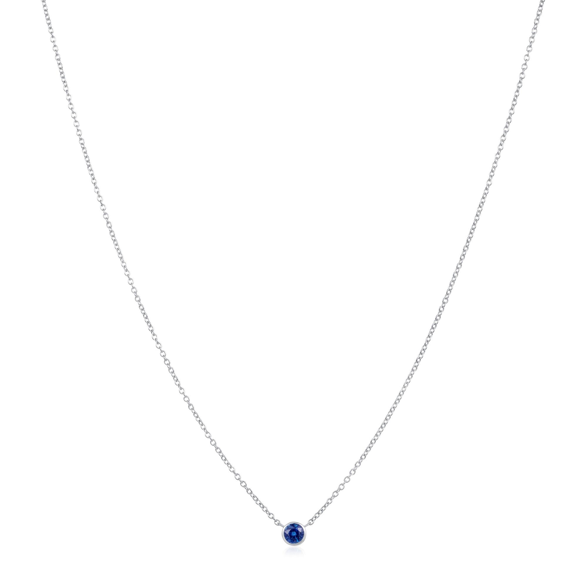 Crafted in 18ct white gold, this timeless solitaire necklace features a vibrant blue round sapphire in a fine bezel setting, finished with a classic trace chain and lobster clasp.