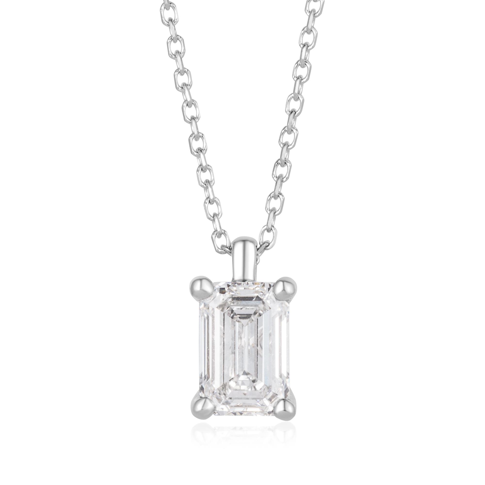 18ct White Gold Lab Grown Emerald-Cut Diamond Necklace 1.00ct