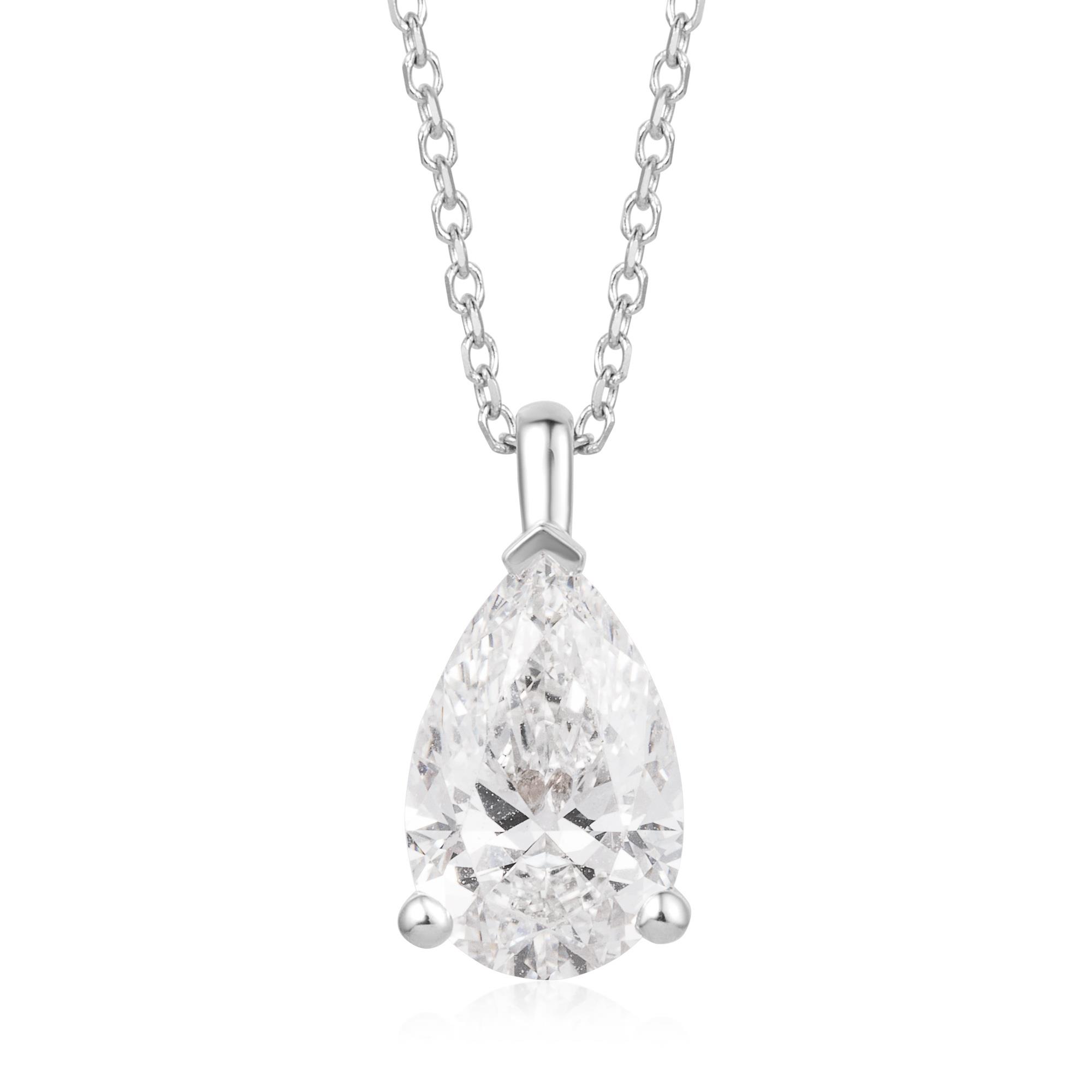 18ct White Gold Lab Grown Pear Shape Diamond Necklace 1.50ct