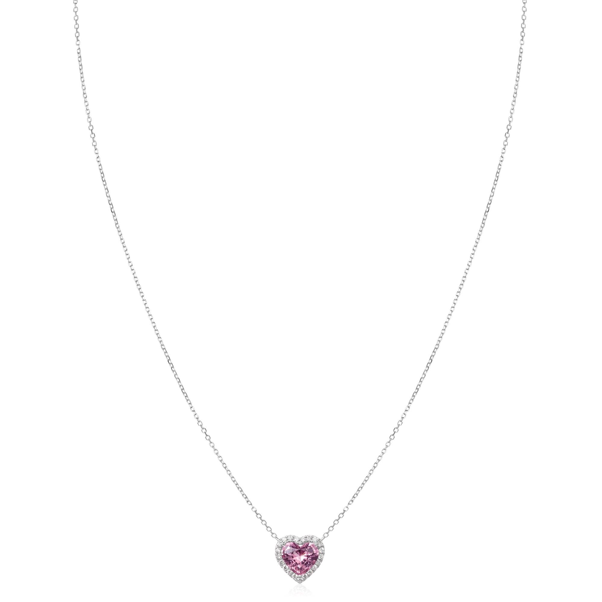 Camellia White Gold Pink Spinel Halo Heart Necklace