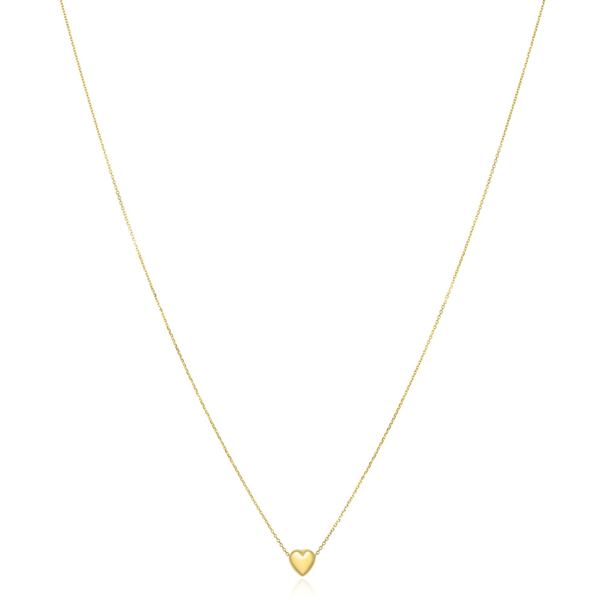 A simple and elegant heart necklace, crafted in luxurious 18ct gold. This playful design features a domed heart shape motif attached to the front of a fine trace chain. Perfect to layer with other pieces.