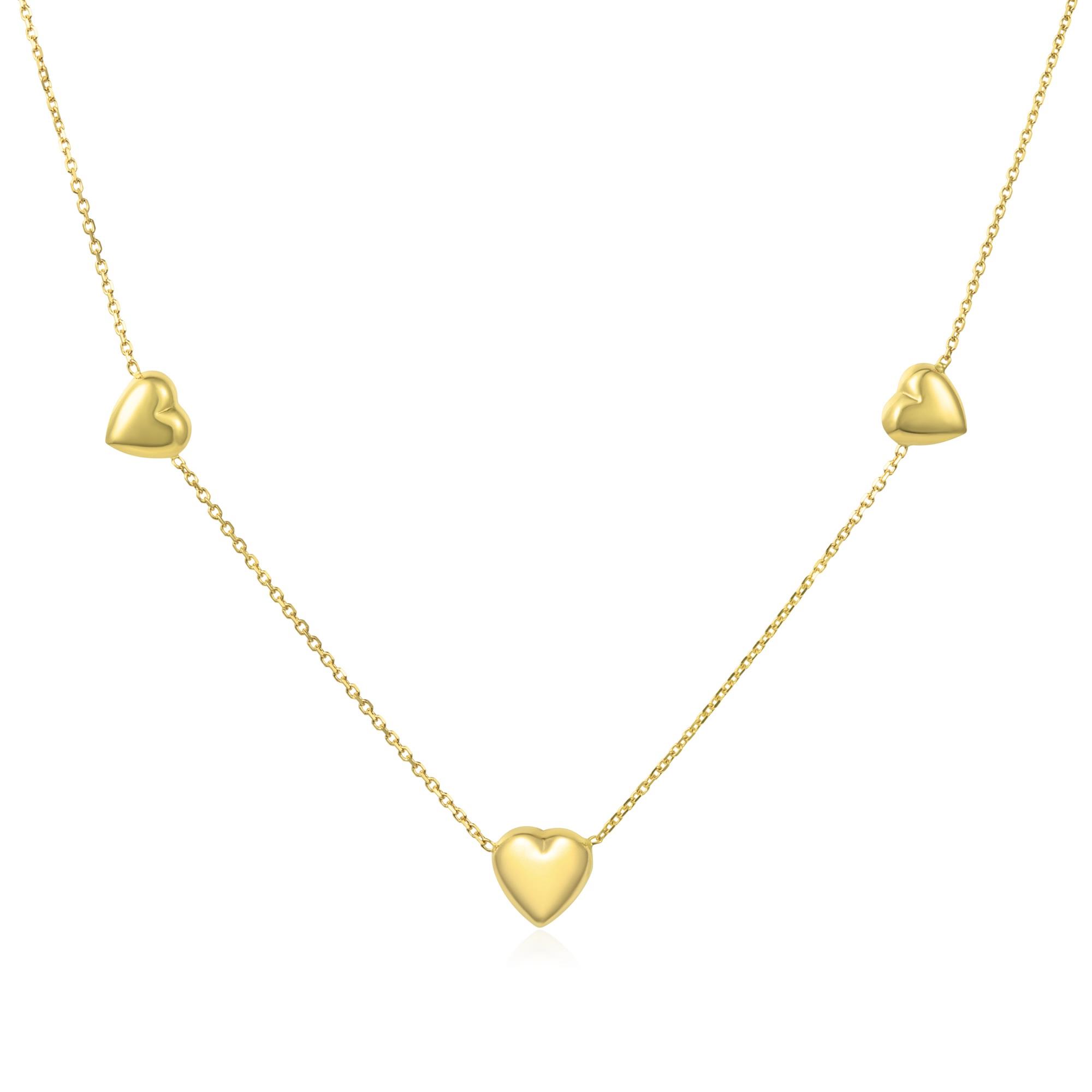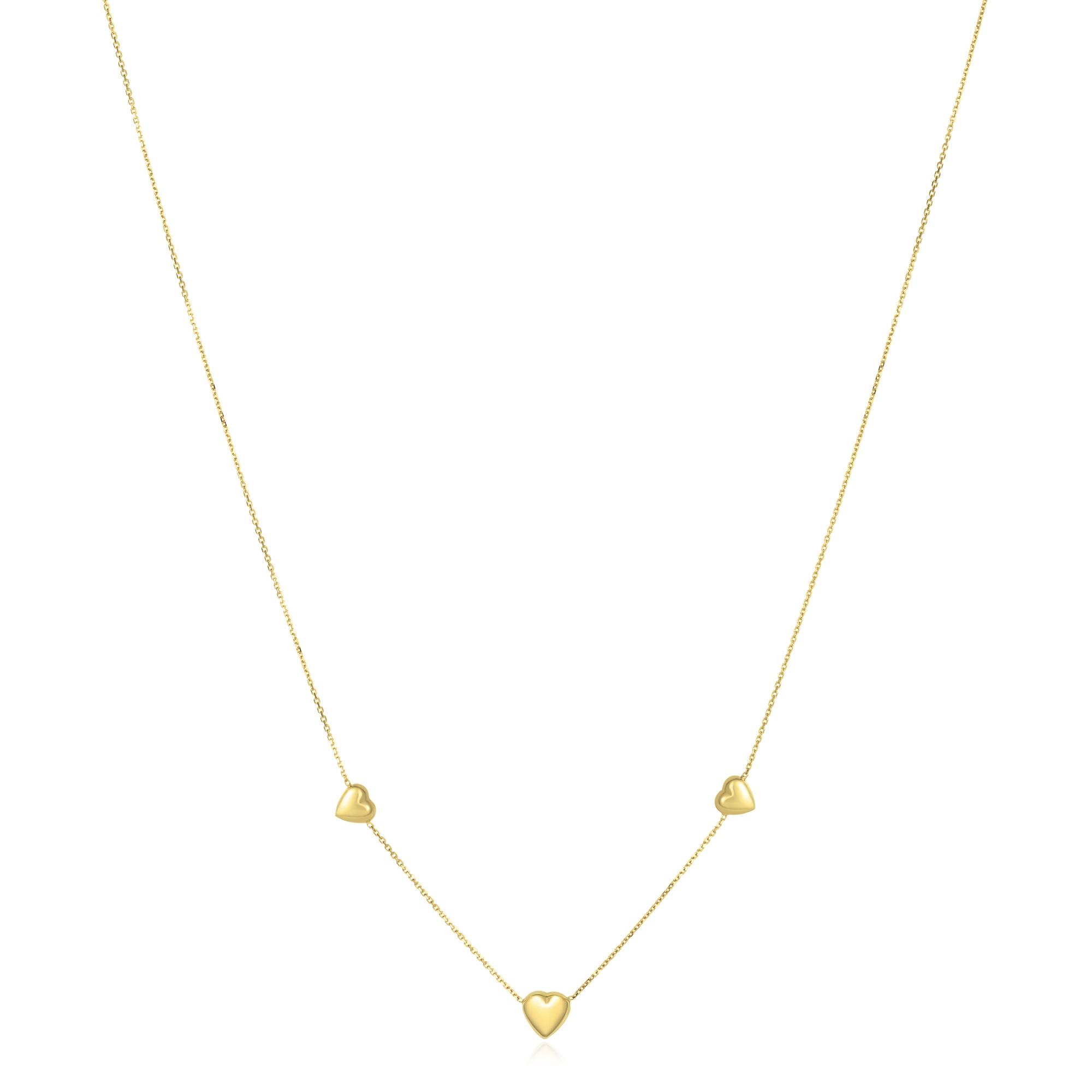 A playful heart necklace, crafted in luxurious 18ct gold. This elegant design features three domed heart shape motifs attached to the front of a fine trace chain. Perfect to layer with other pieces.